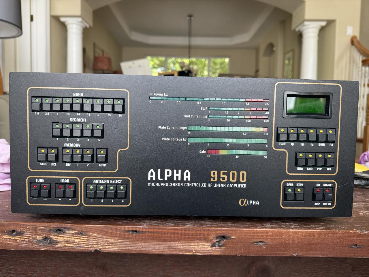 This is a legendary Alpha 9500 HF amplifier. It exceeds legal limit on all bands. Has some cosmetic blemishes per the photo, but I was getting peaks of 1800W, 2100W and 2600W out during the course of my testing (see photos). As Han Solo once said to Obi Wan, “She’s fast enough for you, old man.” Unit will be shipped UPS insured in two double boxes (original Alpha packaging) with transformer removed, bolted to plywood, and surrounded in expandable foam.