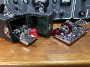 For sale are two bugs from my collection. Bug that is on the left is a Vibroplex deluxe blue racer with the correct carrying case and key. Bug on the right is a rare Dow deluxe rotating frame. Blue racer is $475; Dow is $550. Plus shipping.