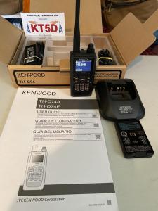 For sale is a Kenwood handheld radio model TH-D74. Radio was returned to Kenwood to have the power management chip replaced. This was a fairly common issue with this radio. Since it was repaired it has had no more problems. Works as it should. Also included is the desk drop in charger and spare battery pack. I am the original owner. $400 insured shipping.
