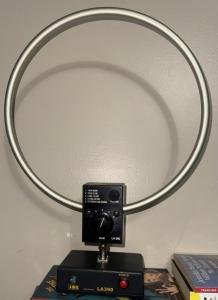 The AOR LA390 is a wideband receiving antenna that covers from 10 kHz to 500 MHz. There are four selectable band ranges for 150 kHz to 30 MHz (0.15-0.8, 0.7-3, 3-10 and 10-30 MHz) and a wideband fixed range for 10 kHz to 500 MHz. The built in amplifier provides up to 20 dB of gain. This indoor antenna is ideal when space is at a premium. This active loop antenna has a 1 foot diameter. The single supplied loop element is all that is required for the entire reception range. Unit is in outstanding shape. Asking $295.00 includes shipping.