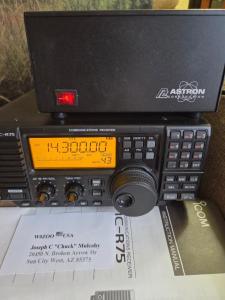 Just in time for your SWL pursuits during the coming season of better band conditions (we hope) is my Icom R-75 receiver. I'm the second owner and the radio is in fantastic shape. Along with the receiver, it comes with an Astron SS-30 power supply and the original print manual. Already using the Icom 7300 plus the 7600, both of which work very well on the shortwave bands, so the R75 is excess in the shack. Fewer and fewer desktop SW rcvrs out there and this is one of the latest and most respected designs available. SWLing started me as well as many other hams into a great hobby so perhaps it will ignite someone's interest wanting to follow that path. I would prefer to sell this set-up in the Phoenix area to avoid the horrors of shipping. Asking $450 OBO. QTH, Sun-city West