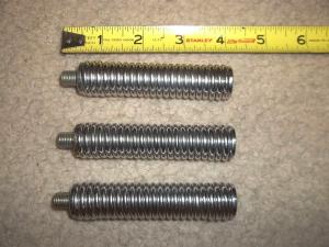 FOR SALE: Three Hustler RSS-2 springs for mobile antennas. Springs have 3/8" x 24 threads. Total length with stud is about 4". Studs are included and are removable. Springs are in excellent condition, unboxed and are leftover from my mobile radio installation days. Asking $45.00 for the set of three, which INCLUDES shipping to the 50 states and US possessions only. Personal check, postal money order, Zelle, PayPal...all A-OK.