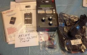 The 269 C Pro antenna analyzer comes with the MFJ 66c antenna accessory pack, walwart (No batteries inside), MFJ manual and niffty manual and and new carrying case and strap (never used)..530 to 230 MHZ ranges. Worked when last used Great cosmetically. Sell CONUSA only.No returns. Local Tilton,NH pick up possible. PayPal or USPS Money order accepted. $300