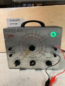 SALE IS PENDING EICO RESISTANCE-CAPACITANCE-COMPARATOR-BRIDGE 950 #11672 my number $60 OBO PLUS SHIPPING This vintage working EICO 950 capacitor checker is in fair to good cosmetic condition. The case may have been repainted. I replaced the 3 power supply filter capacitors and all 6 paper capacitors with modern ones, replaced the A/C power cord, and cleaned switches and potentiometers. I satisfactorily measured several capacitors both for value and leakage. It is great for checking capacitors for leakage under actual operating voltages and can also be used to reform older electrolytic filter capacitors. A set of test leads and a copy of instruction manual are included. Shipping will be within continental USA only, no international shipping.