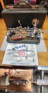 This is a well used 1927 Vibroplex Standard that is fully operational. Not restored, so it has the original patina, well polished through time. It comes in its case that is functional, the leather handle broke some time ago in use, then the replacement fabric handle parted its ways. Hey, it's 99 years old.