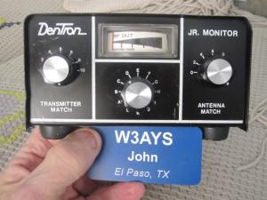 Dentron Jr. antenna tuner/monitor. 300 Watt, 1.8-30 Mhz continuous. Virtually any type of antenna system can be used, whether it be coax (50 or 75 ohm), balanced line (twin lead). or random wire. Great for mobile operation. Line new inside, nothing burned. Works great. Additional pictures upon request. John W3AYS