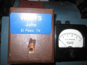 For sale: like new Triplet laboratory 10 amp DC meter with built in shunt. Like new in leather case. Calibration checked. John W3AYS $20