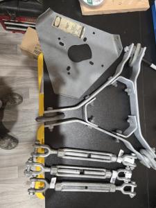Still cleaning found 3ea NEW 6" galvenized Jaw-Jaw Turnbuckels $15.00 ea, Rohn Tower Guy equalizer $185.00, Rohn 25 Rotor plate $45.00. Or $250.00 for all plus Shipping.