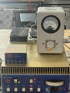 Henry SS-750, mint condition, late model, extremely rare, “Blue Face Version”, Solid state RF power amplifier, utilizes Eight 2SC2879 transistors, designed for high power mobile or base station use. Covers 1.8 to 30 MHz (160m to 10m bands). Shown with 13.8 volts and 100 amp supply producing 850+ watts, drawing 100 Amps, 90 watts drive on 75 meters. Comes with matching Blue Face remote and as new remote cable. Only minor cosmetic flaw is a small bruise, lower left of the amp meter as shown. $3500 shipped insured FedEx. Zelle or PayPal. Have several other photos.