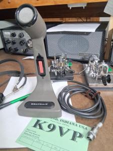High impedance microphone made by Electro-Voice for Heath. This one has the Heath 2-conductor microphone connector and momentary/locking PTT switch and works as specified. Not seen in the picture is a small crack on top that someone has tried to glue and because of this, I am only asking $65 shipped CONUS, no returns. Pictures on request.