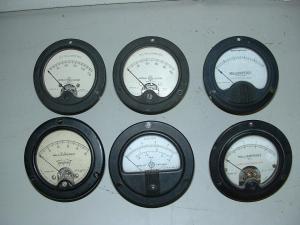 Offering for sale a lot of 6 VINTAGE 3.5 inch diameter METERS. They have the following scales: 100 microamps; 150 milliamps; 1 milliamp; 100 milliamps; 150 milliamps; and 5 milliamps. The last two have been altered from other scales to lead as listed. Take a good look at the picture. What you see is what you get. The whole lot for only $39.95 postpaid within the lower 48 United States. I accept paypal (preferred goods & services); postal money order, cash, or checks (hold until it clears).