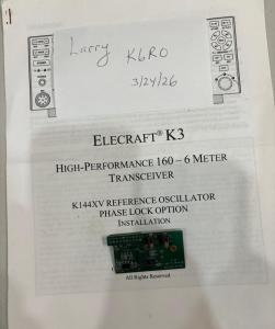ELECRAFT K3 and K3S - K144XV 2 Meter Reference Oscillator Phase Lock option.