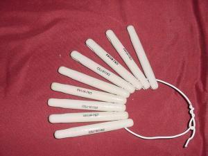 These Antenna insulators are originally used on WWII aircraft antennas but now are sold in surplus stores. They are Glazed Ceramic, 4¼” Long, X1/2” Diameter. Hole spacing center to center is 3”. Hole diameter is 1/8”. They make great end insulators for Dipole antennas or line spacers. Surplus stores sell them for $9 each. $5 ea plus shipping. I take Paypal, Post MO and check.