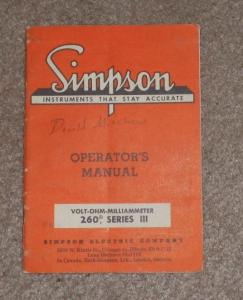 Manual for Simpson 260 VOM For Sale: