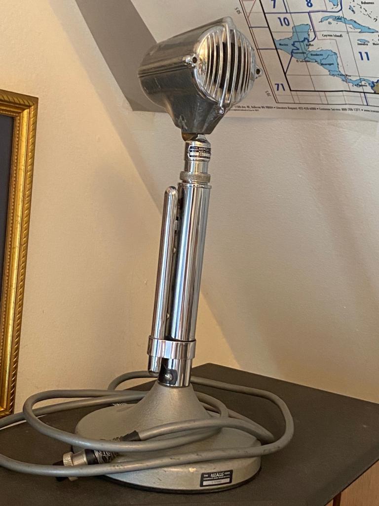 This is a great sounding and great looking dynamic desk mic made in 1950. Has clean and bright Chrome; no pitting. No gunk in the microphone grill. It's wired for Kenwood rigs but can be re-wired if different. Comes with a 6 foot cable; this cable is not brittle and has years of life left. A true functional working mic with history; better than a D-104. These mics were priced higher than the D-104 in the Astatic catalogues of the day. I offer this mic for $120 buyer pays shipping via USPS or UPS. If you pick up the mic at my QTH cash only. If shipping to you I request payment by USPS money order. Ships the same day I receive payment. Contact me via e-mail initially to discuss.