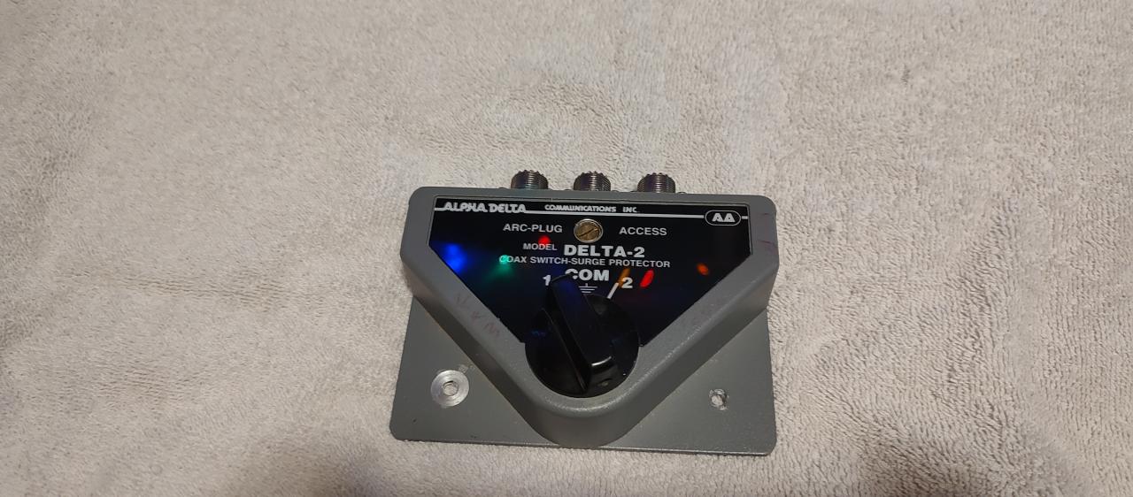 Alpha Delta 2 position antenna switch.with arc plug.Excellent working condition. $65 plus shipping.Sold ad is,no refund,no return.Money order only No PayPal.Thanks for looking.