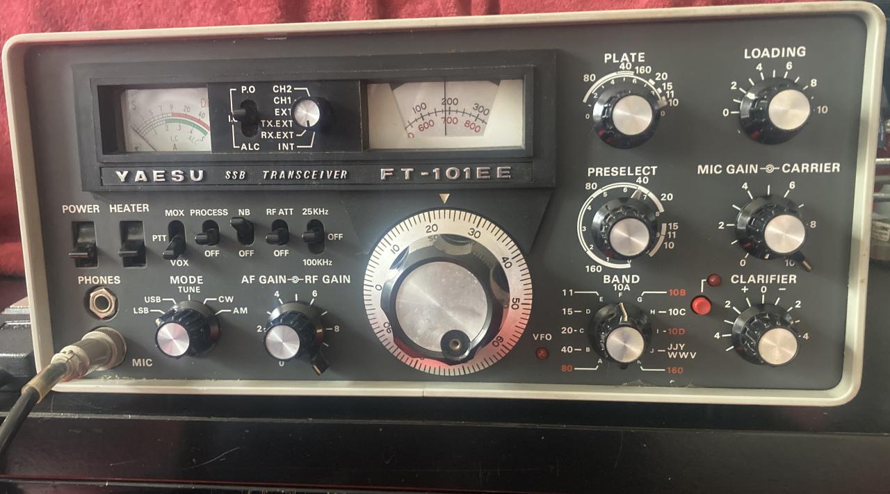 IN MY SEARCH FOR THE FT-101 I ENDED UP WITH FIVE. AT THIS TIME I AM WILLING TO PART WITH THIS ONE ONLY. IT HAS NOT BEEN POWERED UP IN A LONG WHILE? IT IS MISSING THE JUMPER PLUG ON THE REAR THAT WAS THE WAY I GOT IT. DOES HAVE POWER CORD AND HAND MIC. PRICE IS $200 FIRM PLUS YOU PAY SHIPPING. OR WILL MEET YOU UP TO 50 MILES. PLEASE CALL IF INTERESTED.