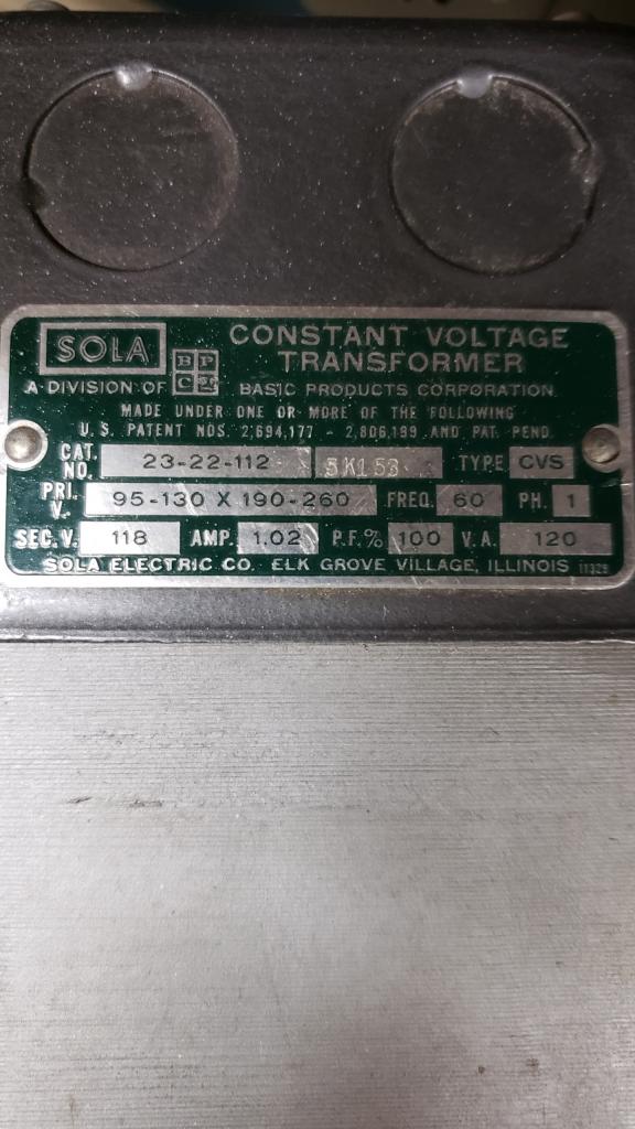 One year old not beat up, Sola Constant Voltage Transformer. 1amp primary voltage 95-130 x 190 - 260. 60hx, 1 phase. Heavy duty performer. Have two of these, MSRP is $855. I'm asking $100 each or a deal on both plus shipping. The CVS Series power conditioner recreates a well regulated sinusoidal waveform that is well isolated from input disturbances including impulses, swells, and sags.https://us.rs-online.com/product/solahd/23-22-112-2/70098579