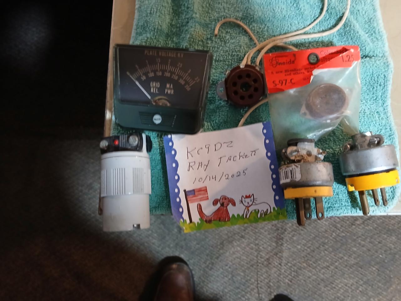 for sale 2 heathkit 9 pin tube sockets,heathkit sb220 meter looks like it is in good condition, 2 220 male socket plugs, 1 femals 220 volte socket