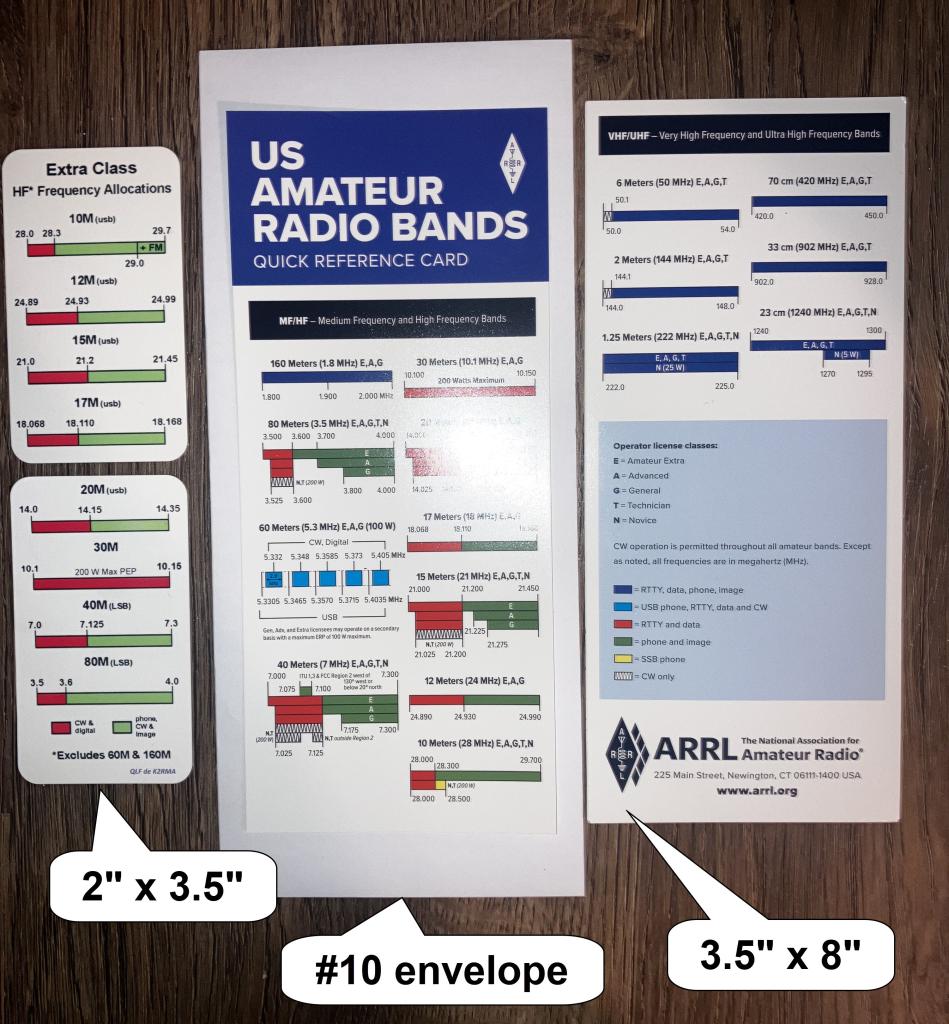 as well as purchased some 2-sided ARRL US Band (small) Quick Reference Card (3.5" x 8").