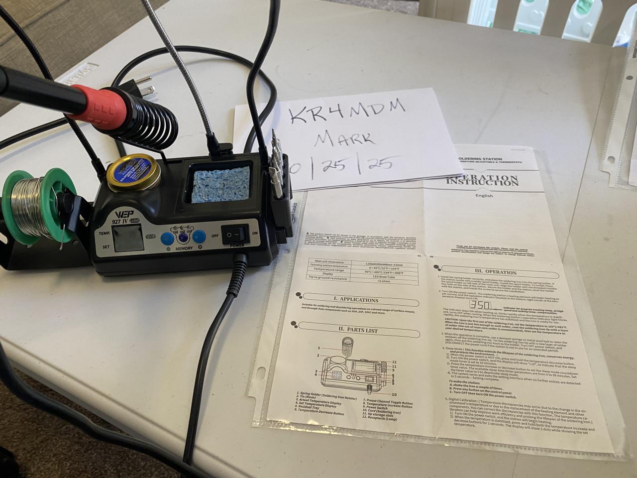 High-Power 110W with 3 Preset Channels, Sleep Mode, LED Magnifier, 5 Extra Iron Tips, Tip Cleaner, 2 Helping Hands, Tip Storage Slots, Lead-free Solder Wire. Works great just consolidating and I do not need two stations. I will let this go at just $40 plus shipping to your QTH. As always, all sales are final due to parts scammers. This was just pulled out of service and it working well.