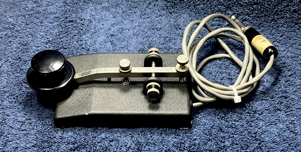 Very nice looking Wm. M. Nye 330-001 Master code key. Cable is terminated in a 1/4" plug. Produced by WMM Nye in Bellevue, WA which includes a very sporty "Navy Knob".