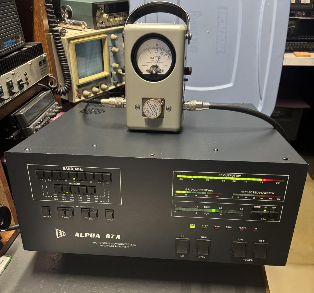 Alpha 87A. Everything in good working order. Tubes are good. 50 watts in, 1500 watts out as shown in picture. Includes owner's manual. $2250 picked up. WILL NOT SHIP!