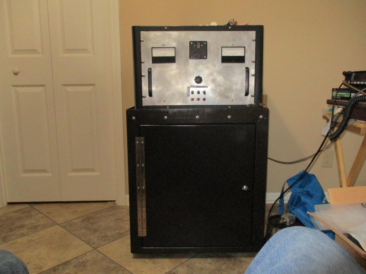 This is a well built W6PO designed amplifier employing "plumber's delight" tubing for the resonator tubes. A turns counter operates the Plate cap. The load cap is adjusted from the rear panel. Adjustable input matching provides for fine tuning of the input SWR. An Omron Technologies Time Delay Relay provides proper warmup for the 8877 (3CX1500A7) tube. The RF deck is mounted in a rack mount case that sits atop a custom built roll around cabinet. The high voltage transformer and filter caps are mounted in a separate housing sitting inside the cabinet. High voltage is manually controlled by a Variac.. The amplifier is wired for 240 AC voltage. Driving the amp with 35 watts easily produces a 1KW signal. 45 - 50 watts brings it to full legal limit. Asking price for this amplifier is $1100.00. This amp cannot be shipped, pickup only in Elkhart, TX. For additional info, contact me by phone or email only, no texting. Tnx, Nick KM5FL.