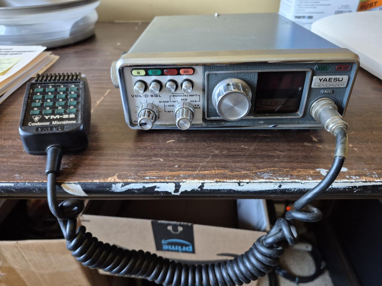 I believe it is working, but no guarantee, we could not find the power cord. Includes the mic as pictured. NO manual and NO power cord, but the manual is still available at https://www.repeater-builder.com/yvs/pdfs/yaesu-ft-227r-inst-manual.pdf here is another copy of the manual for this unit http://www.radiomanual.info/schemi/YAESU_VU/FT-227RB_user.pdf