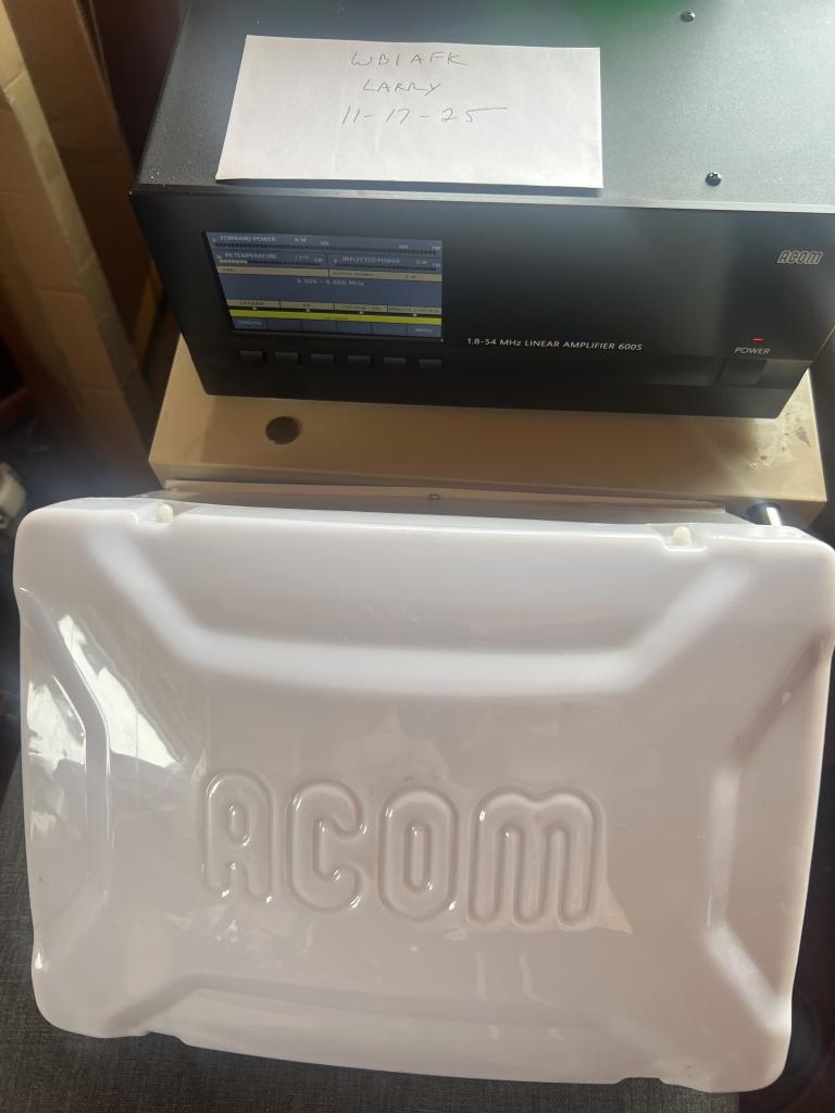ACOM 600S solid state 1.8-54 MHz amplifier with Acom 04AT Remote Antenna Tuner. Amp SN:180131. Putting out around 450 watts with 8 watts drive from my ic 705 on 75 meters. All works as it should. $3000 shipped in original boxes FedEx ground. PayPal or Zelle