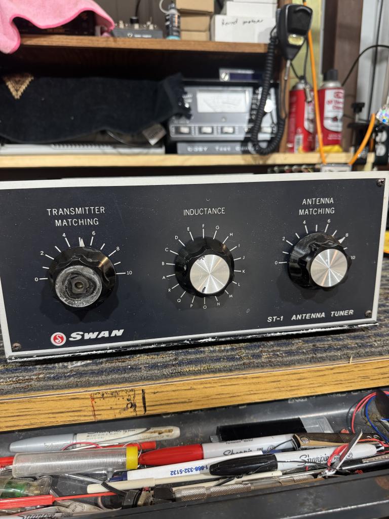 fairly clean for it to age ST-1 goes with the swan series 1 KW antenna tuner clean inside sold as is untested 50 bucks plus shipping 73’s