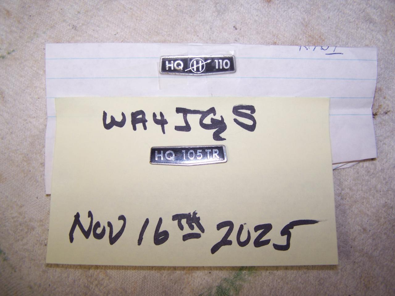 HQ 110 and HQ 105TR name plates in excellent shape. both for $30 shipped