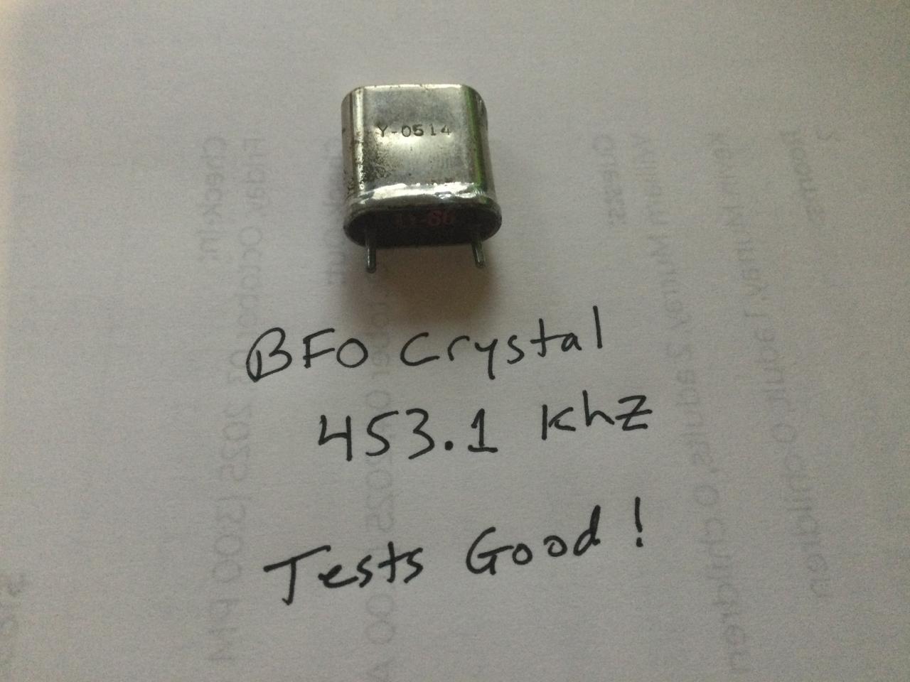 Found this while looking for something else. HC-6 type crystal for 453.1 Khz, perfect for BFO project. I tested it and it is oscillating cleanly on correct frequency. $10 includes shipping , prefer paypal but flexable. 73 Bill W9VC