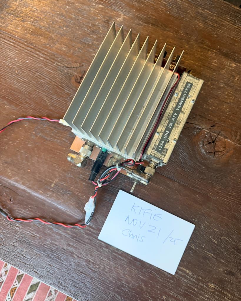 This is a 1255MHz ATV transmitter with 16W amp (more than enough power for this band). BNC in for video and audio, pre-emphasis circuit, extra large heatsink, silver connectors, N-antenna port.