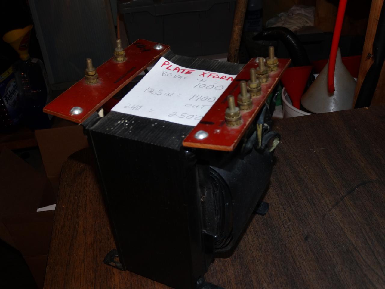 High Voltage (Plate) Transformer For Sale: 208 - 240 VAC in, 2500 VAC at 240 in. 125 in gives 1400 out. Not sure of current but at least 1A, pictures on request of it running my 2 X 3-500z amp with ease.
