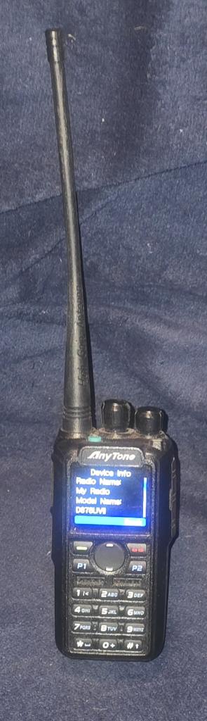 Anytone at-d878uvii in excellent condition and has not been programmed. I charged and tested the radio. It transmits and receives on 2m and 70cm but decided it too complicated for my taste.