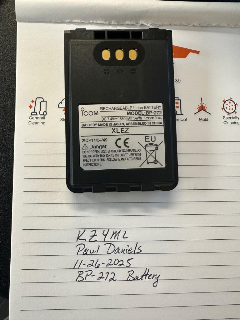 I have for sale a like-new Icom BP-272 Li-ion battery pack. This is a popular battery for Icom HT's, such as the ID-31 / ID-51 / ID-52 as well as the standard battery for the Icom IC-705.