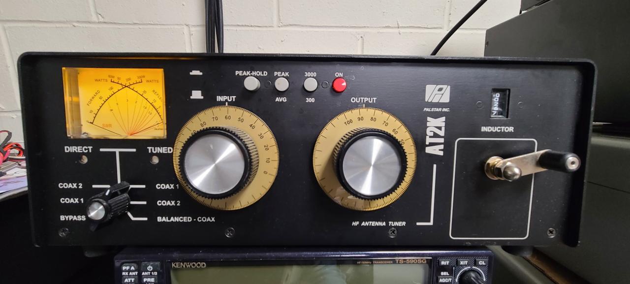 Palstar AT2K high power antenna tuner- 10-160m coverage, rated to 2000W.T-type tuner with large variable caps and roller inductor. Has backlit cross-needle metering for seeing forward power, reverse power and swr at the same time, with low 300w/3000w meter selector, and pk/avg selector. Can attach 2 antennas plus a balanced line antenna, with selector for direct or bypassing the internal tuner. Comes with copy of manual. Non-smoker/non-pet home -Works and looks like new - $450 demo/pickup (NNJ 07860), or plus shipping. Accept USPS money order, Zelle, cash, or Walmart wallet. Sold as working, but as-is no returns.