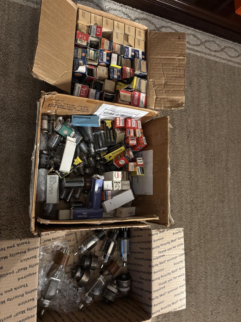All kinds of used and possibly nos tubes…811a,6dq5a,etc….make an offer I want to sell all together and pick up only since I have no desire to wrap each tube…hihi