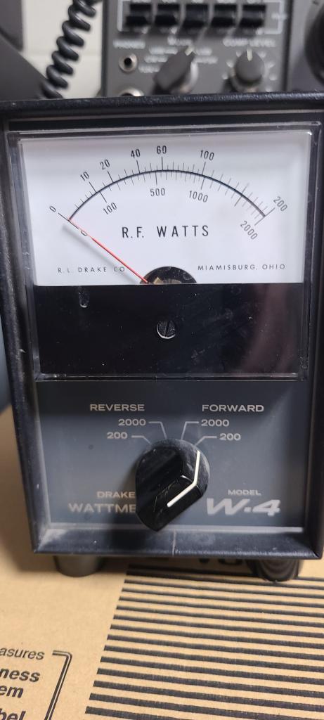Selling for a ham friend recently passed. Nice condition Drake W-4 wattmeter. Works, but reads a little high (adjustable but I did not try). Very nice condition (owner had 2 velcro squares on to-, I did not try to remove). Has forward and reverse power switch with 200w and 2000w scale selection. Coupler is remote-able with the attached short cable.