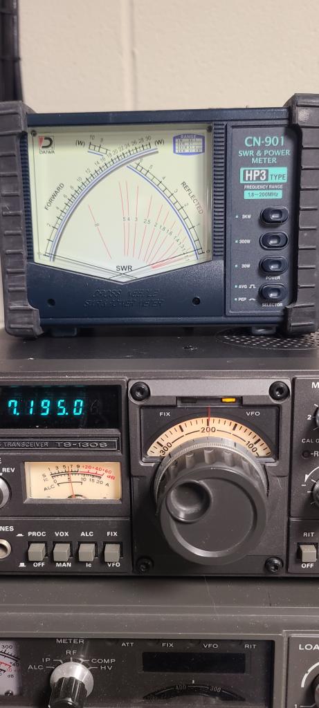 Selling for a ham friend recently passed. Daiwa CN901HP3 large cross-needle SWR/wattmeter. 30W/300W/3000W selectable scale. Peak reading or average reading selector. Built-in backlight. Very nice condition, owner had put a couple of velro strips on top I did not try to remove. Needs 12vdc for peak reading and backlight. Current new this sells for $300, buy this one for $125 demo/pickup NNJ 07860. Works fine including peak circuit and backlight. Accept USPS money order, Walmart wallet, personal check with time to clear and address matching qrz callsign lookup. Sold as-is, no returns.