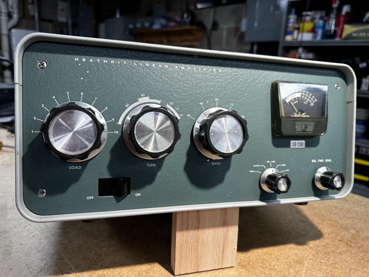 Heathkit SB-200 in excellent working condition. This amplifier has an updated new power supply, softkey kit, and parasitic suppressors. Tubes are Cetron. Wired for 220V, but easily changed to 110. Cosmetically very nice! Buyer pays shipping - approx weight is 40lb. Local pickup in NJ preferred. Many additional pictures available. Asking $575