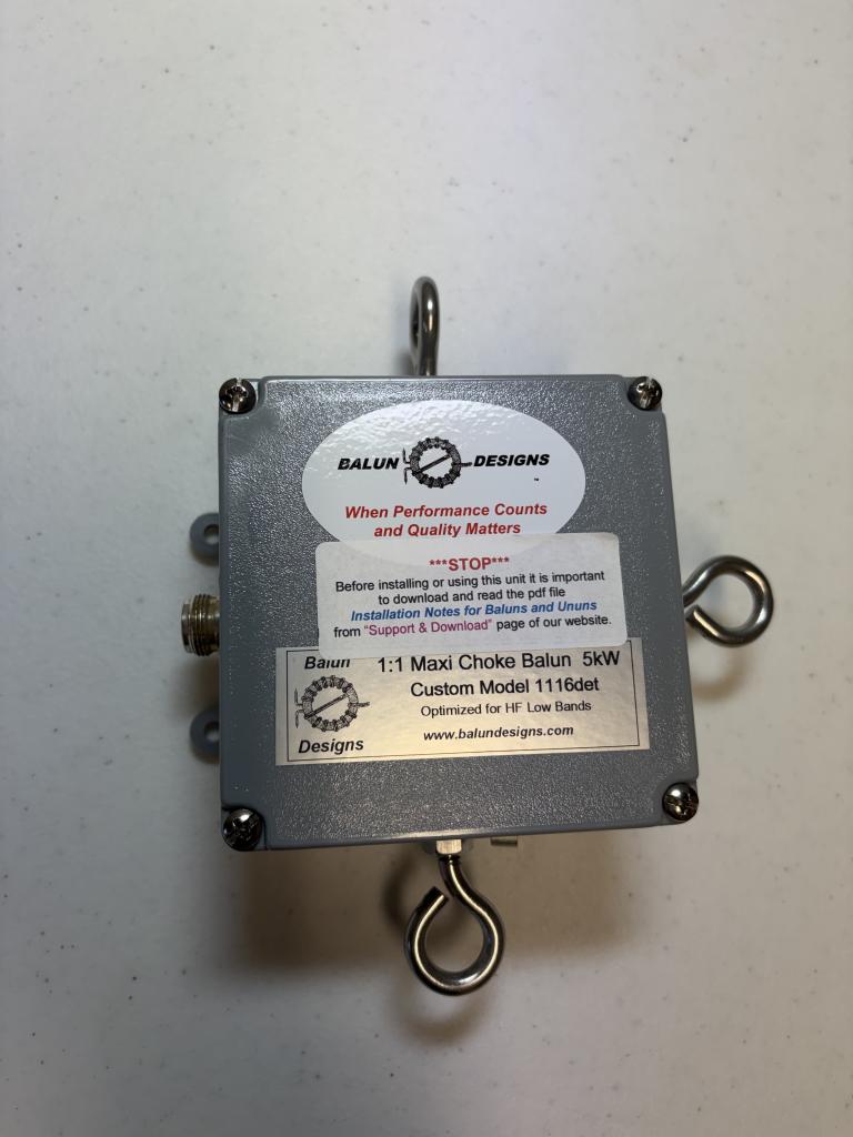 New in Box (never used) Balun Designs 1116det N-connector, 1:1 Maxi-Choke balun, 5kW rating, Low Band Optimized, configured for Half-Square antenna. $75 shipped continental 48 USA.