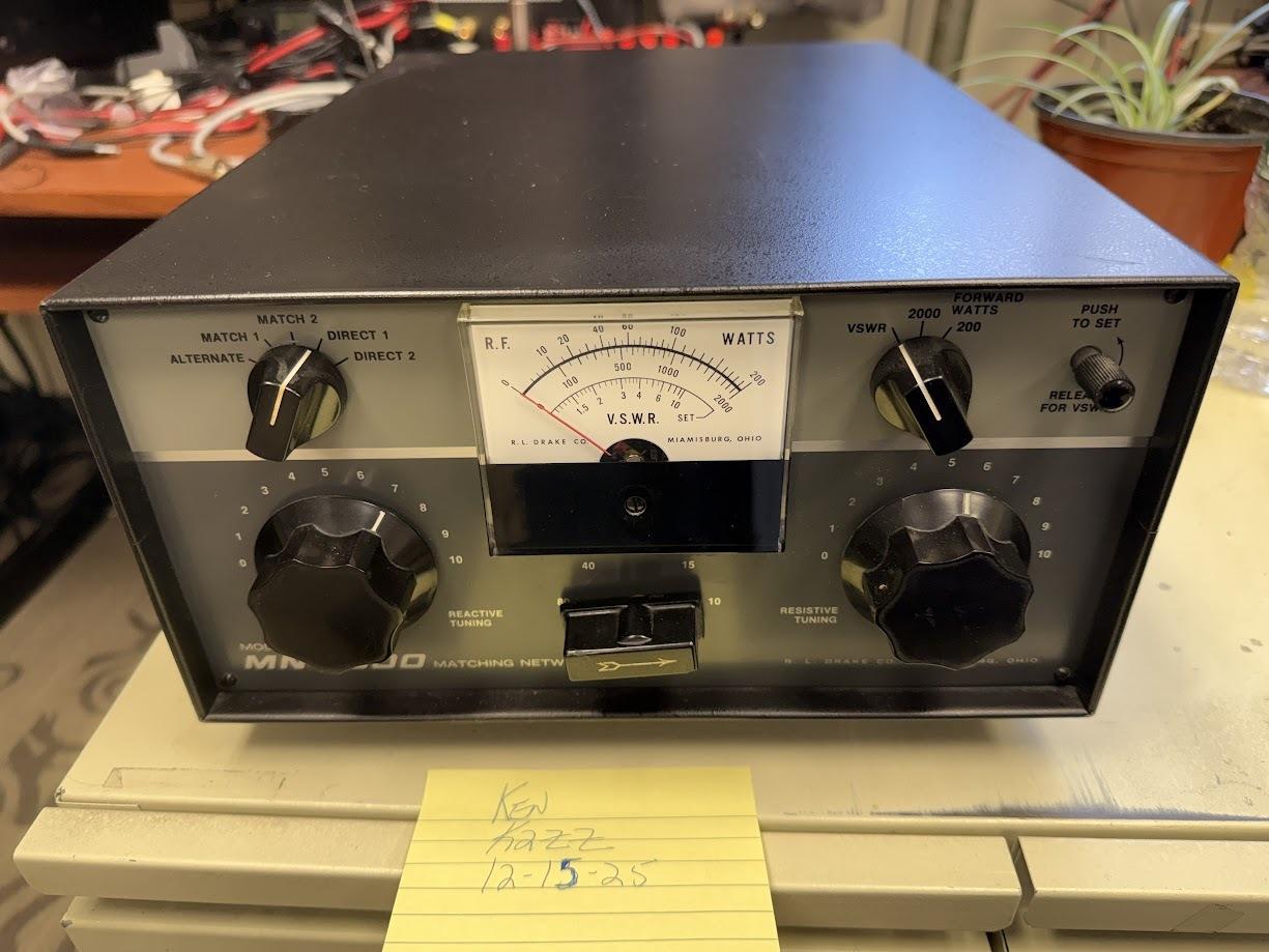 I have for sale this excellent working Drake MN-2000 2KW antenna tuner. I used it to tune my Cushcraft R6000 to the Icom PW1 amp.