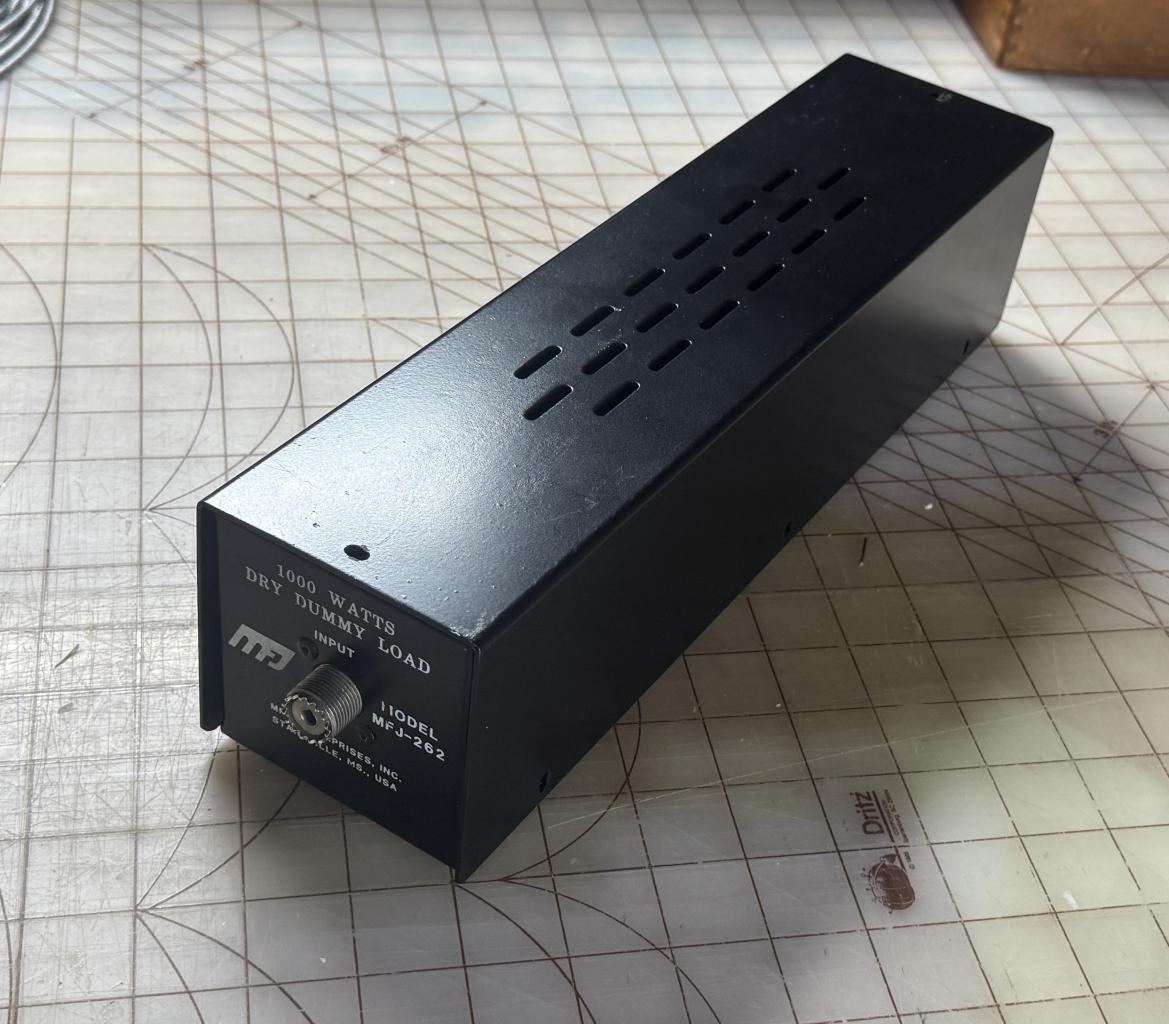 I have an MFJ-262 1KW dummy load in great condition. It’s rated to 30MHz. SWR is about 1.3 at 30mHz, above that the SWR climbs a bit. $50 includes shipping in the US. I can do PayPal or Zelle. More pics available, just ask. Thanks for looking,