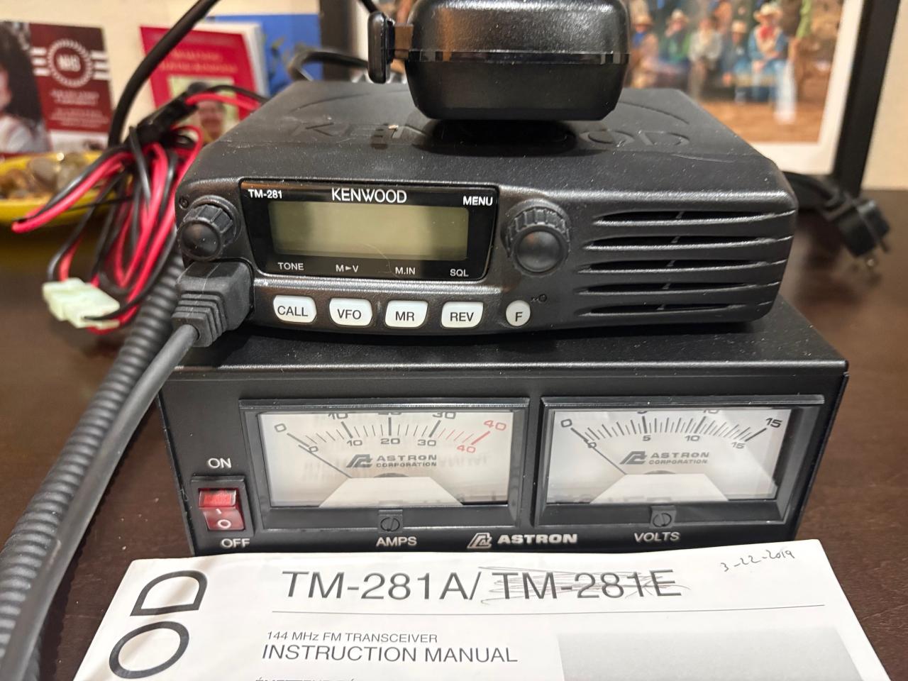 For sale is a Kenwood TM-281A, a single-band 2-meter (144–148 MHz) FM 65 transceiver known for reliability, clean audio, and strong output power. Included are a microphone and an Astron DC power supply, but it does NOT come with mounting brackets or hardware (both are easily obtainable).