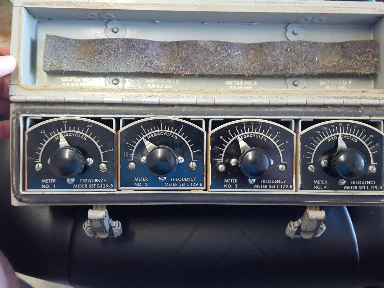 Model: I-129-B Frequency Meter Set - MILITARY U.S. different makers Wood case many pics available. Portable set > 8 inch Dimensions (WHD) 340 x 140 x 90 mm / 13.4 x 5.5 x 3.5 inch Military version of the James Millen 90601. LC tuning units inside:No. 1, tunes from 1.5 to 3.5 MHz.No. 2, tunes from 3.5 to 8.0 MHz.No. 3, tunes from 8.0 to 18.5 MHz.No. 4, tunes from 18 to 40 MHz. Used for instance for the system SCR-508 for tanks like M5 Stuart, M7 Priest, M10 Wolverine, M24 Chaffee, M4 Sherman, M7 MT, T1 heavy, M36 Slugger, M4A3E2, M4A3E8 Sherman, M6, T20, T25 AT, T29, M26 Pershing, T23, T28, T32, M46 Patton, T34, T95. The military Radio Set SCR-508 consists basically of Radio Transmitter BC-604 and two Radio Receivers BC-603. BC-604: 10 preset channels for FM voice with power output of 30 watts, frequency 27.9 Mc. Receiver BC-603: Superhet with IF 2.65Asking $50 plus shipping. Collector quality