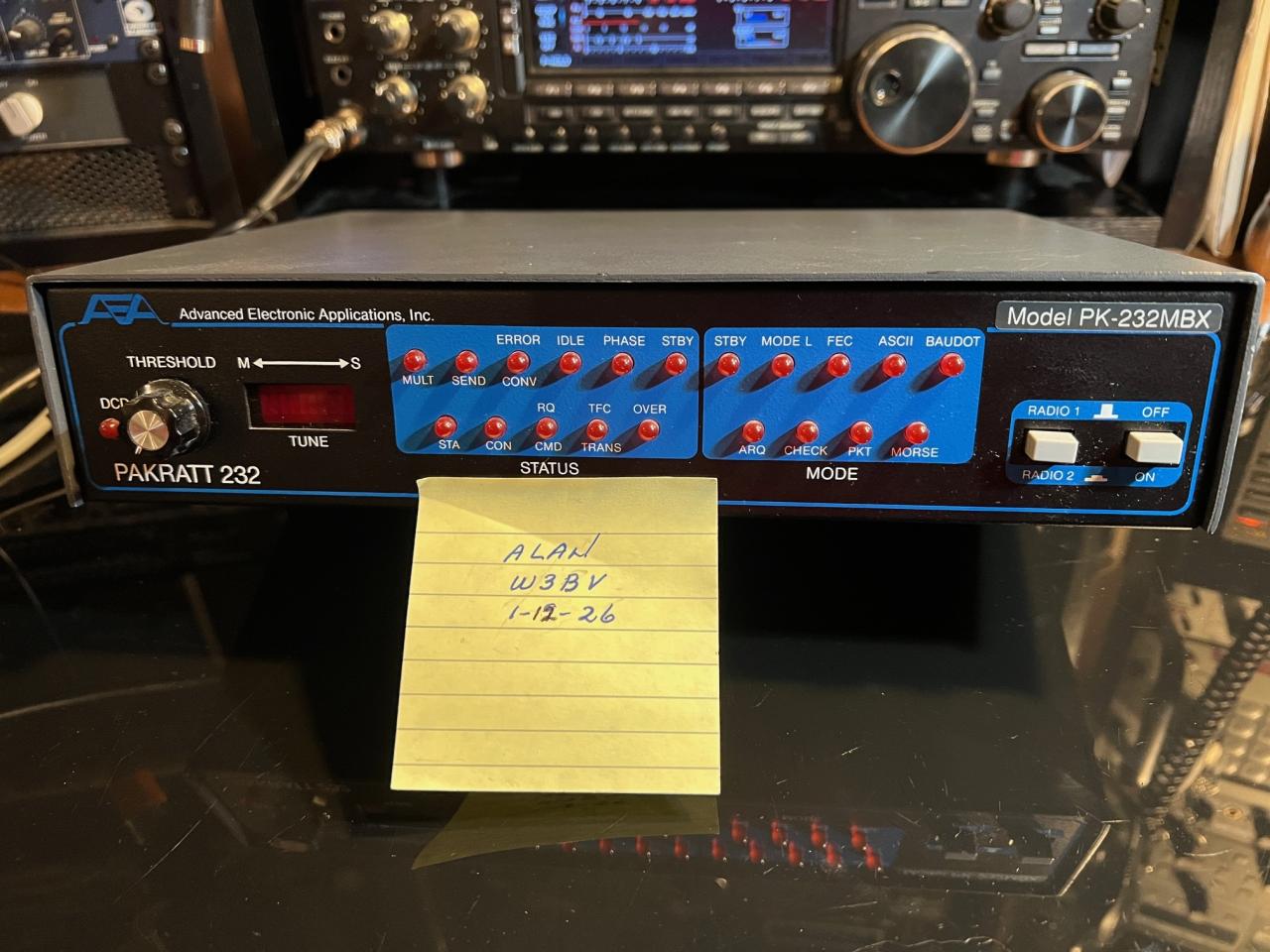For Sale: TIMEWAVE PK-232MBX Multi-Mode TNC. Provides six modes including weather fax, Morse code, Baudot RTTY, ASCII, AMTOR and Packet. Two radio ports on the back panel allows easy HF/VHF radio selection switching from the front panel. Includes TNC to radio cable and manual included. In excellent physical and electrical condition. $50 plus shipping. Payment by cash, USPO money order, or Zelle (preferred). Sale is final, no returns. Reply to W3BV at yahoo.com.