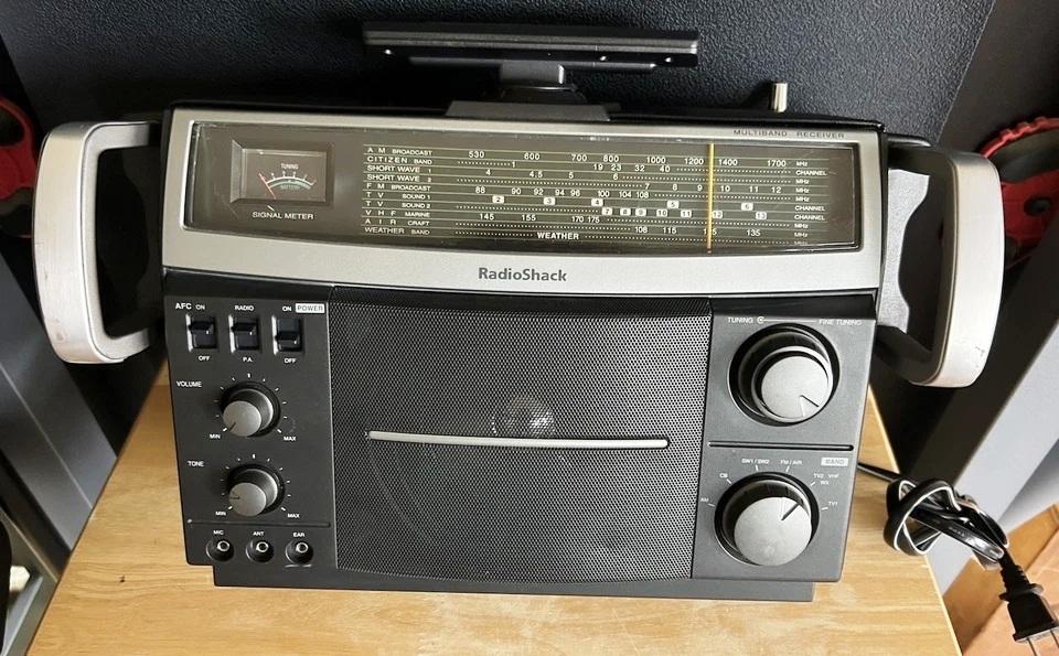 The Radio Shack Direction Finding Multiband Radio, Model 12-795, is a vintage radio receiver that offers a wide range of frequencies including AM, FM, CB, SW1, SW2, TV1, TV2, VHF, Marine, Air Band and Weather Band.
