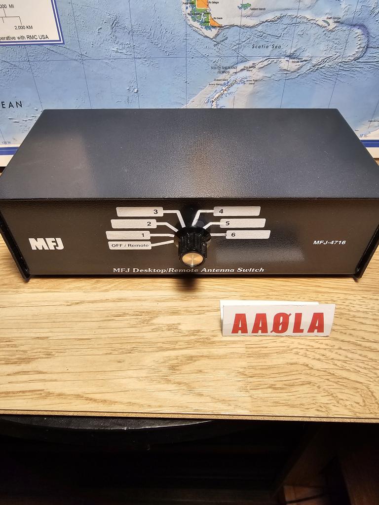 MFJ-4716. 6 Position Coax Switch. Great shape, used only for a short time until it's bigger brother became available. Designed for desktop but could control remote. Grounds all unused inputs. Grounds all antennas when turned off. $110 shipped stateside.